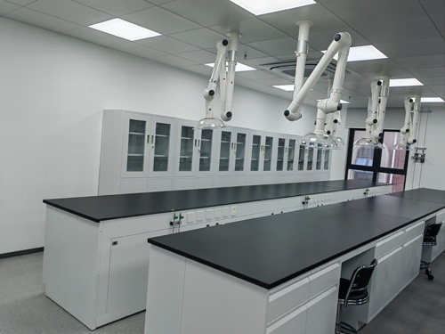 1.材 料:櫥柜臺面使用12.7mm厚威盛亞實芯化學實驗操作板,邊沿加厚為25.4mm,耐灼傷、防潮、耐常溫耐磨性、耐抵御、不會改變形、無污染、易清洗、并還具有保持良好的載重性。